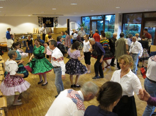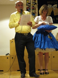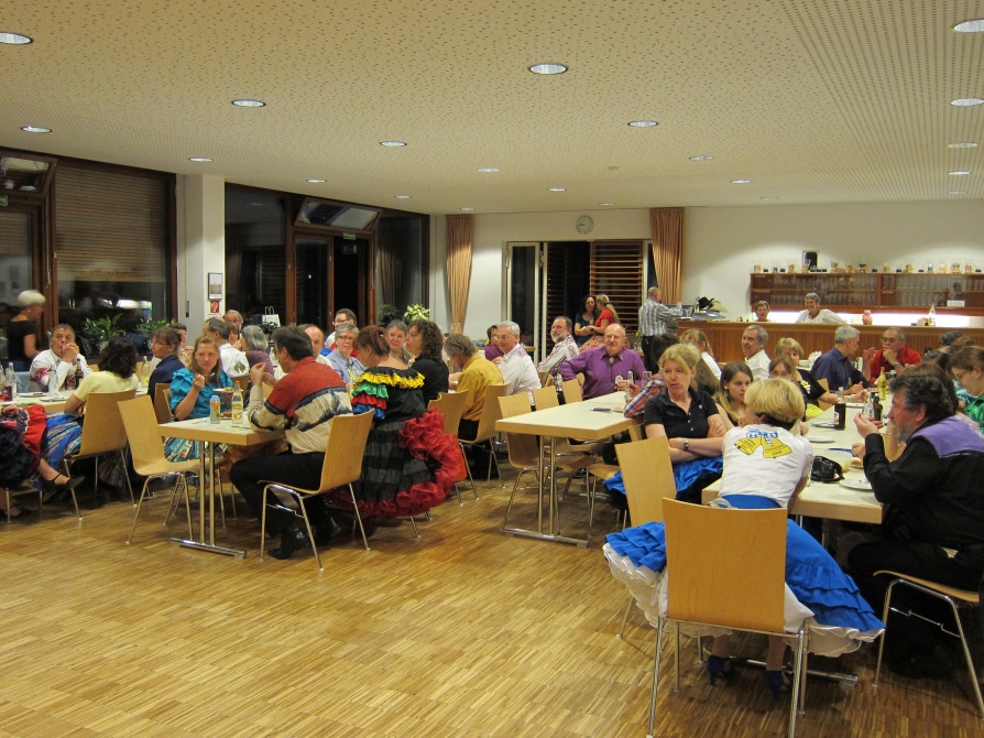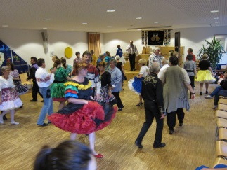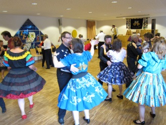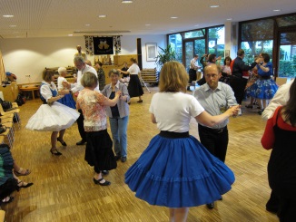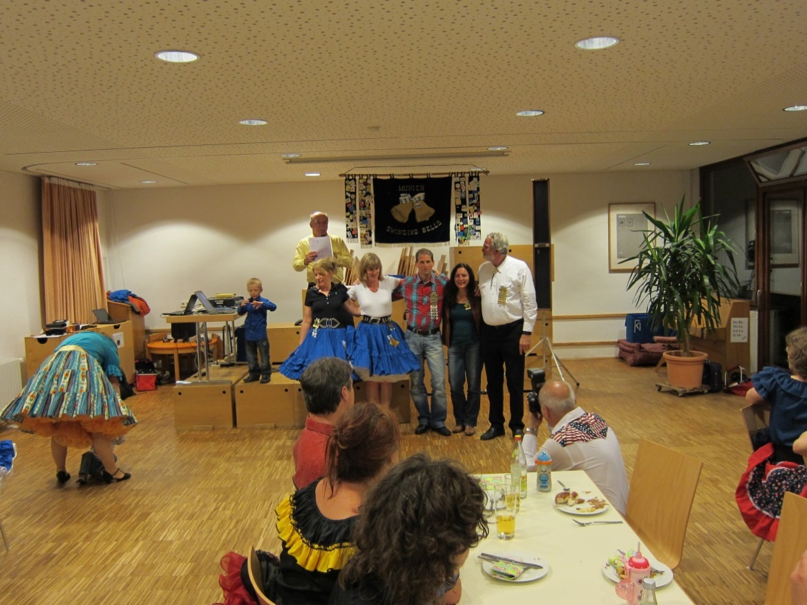 Wegen des Anniversary hörte der Round-F-Kurs etwas früher auf. Und so konnte der besondere Clubabend pünktlich beginnen. Es standen fünf Squares auf der Tanzfläche und auf der Bühne standen Christof und Markus im Wechsel mit Martin für Round.