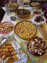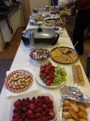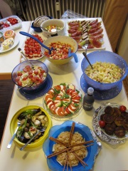 Das reichhaltige Potluck, vom Club bekamen wir Leberkäse mit Brezen gesponsert, wurde mit Freude erwartet.
