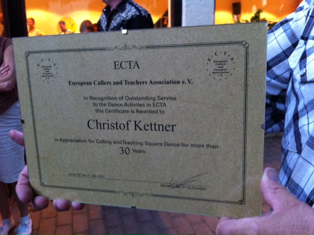 Beim Clubabend am 10. Juli 2015 bekam Christof Kettner von Martin Prüfer eine Urkunde überreicht. Diese hatte Martin, bei der diesjährigen ECTA-Convention in Reinstorf/Lüneburger Heide, für Christof erhalten.