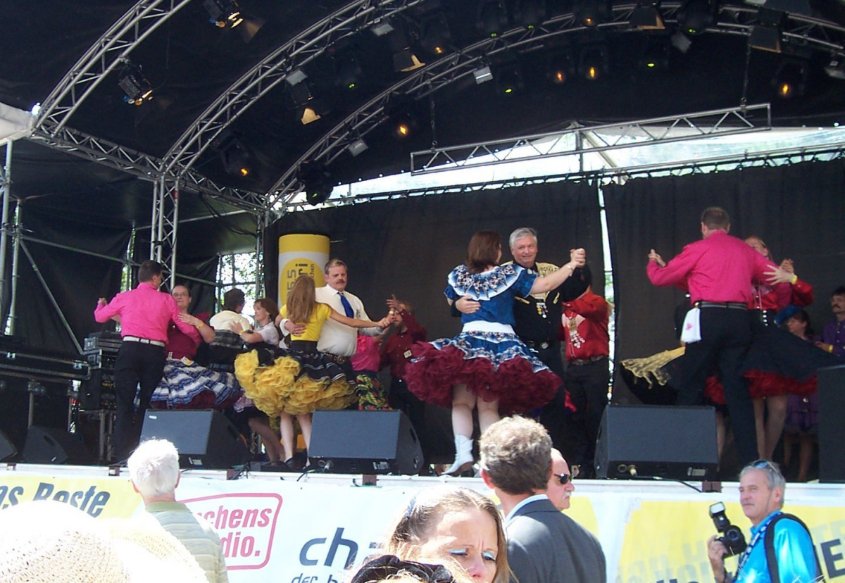 Ja, so war es dann auch. Nur für die Demo war dieses Wetter schon sehr anstrengend, die Herren alle in langärmeligen Hemden, da schwitzte man schon allein vom warten auf den Auftritt. Von vielen Müncher Clubs waren Mitglieder anwesend, die bei der Demo mithalfen. Getränke verteilen, Flyer verteilen oder mittanzen.