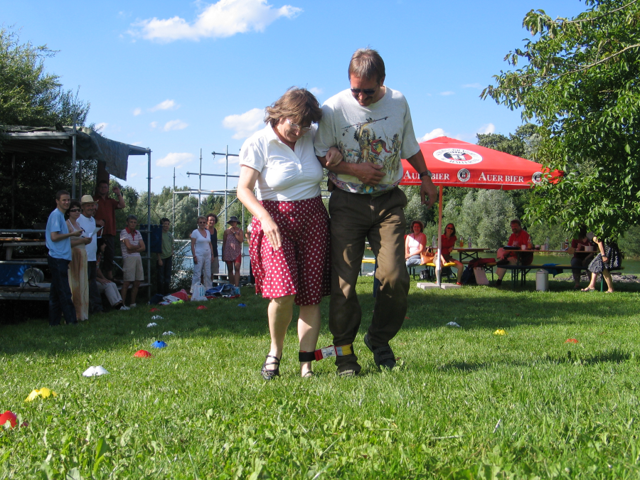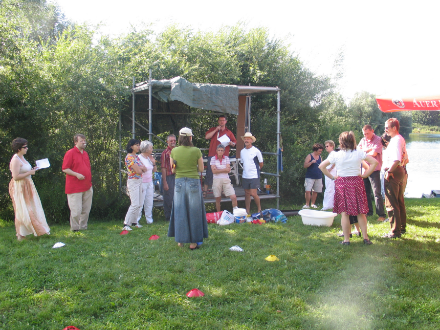 Als wir ankamen war die Stimmung schon sehr ausgelassen. Das Kuchenbuffet zum die Mitglieder fleissig beigetragen hatten, sah verlockend aus. Also nichts wie ran ans Essen. Zwischenzeitlich hatte schon die MSB-Olympiade begonnen. Es gab 3 Gruppen die diverse Disziplinen durchmachen mussten. Einige Mitglieder machten es sich auf den Bierbänken bequem und sahen zu, andere wiederum waren am und im Wasser zu sichten.
