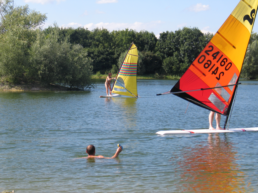 Federballausrüstungen waren vorhanden, Surfbretter zum ausprobieren, Ping-Pong war dabei. So konnte jeder entscheiden, was er gerne tun wollte. Um 18.30 Uhr eröffnete das amerikanische Buffet. Es bestand aus Salat mit verschiedenen Dressings, Hähnchenteile, Countrypotatoes, Spare Ribbs, Halsgrat, Baguette und verschiedene Saucen. Nach dem Buffet wurde das Lagerfeuer entfacht und wir konnten über den See hinweg den Sonnenuntergang beobachten, herrlich!