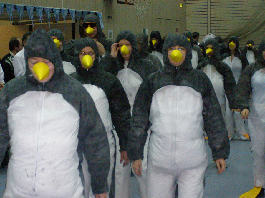 Beim Grand March, der mit einer Überraschung angekündigt war, sprangen auf einmal eine Menge Pinguine in den Saal und führten einen Tanz für und mit Martin auf. Es gab noch verschieden Beiträge von Martins Clubs Tamara Twirlers, Dancing Dragons und uns. Es gab Fotowände und eine Diashow, in der sich alles um Martin und seine Erlebnis seiner 20 Cuer-Jahre drehte.