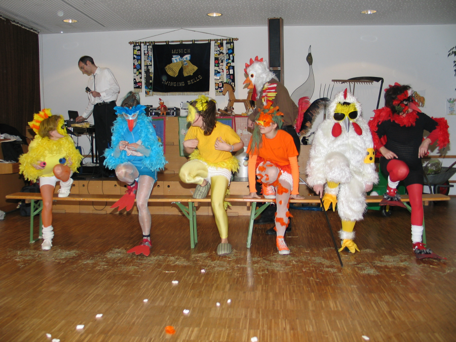 Für die dazu passende Stimmung hatten die Chairlady Bine mit Hildegard und Marisa, den Raum mit ein paar bäuerliche Weisheiten dekoriert. Das Highlight des Abends war ein Auftritt unserer „Chicken Bells“, angeführt von Hühnerfrau Hildegard und Gockel Franz haben uns Bine, Katrin, Lisa, Marias, Renate und Vivi einen lustigen Abend mit verrückten Hühnern beschert.
