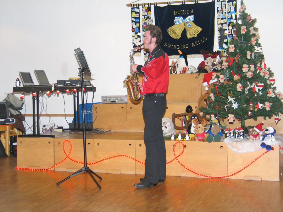 Unser Clubmitglied Christoph Lehner leitete die Höhepunkte dieses Abends jeweils mit weihnachtlicher Musik auf seinem Saxophon ein. Geschichten auf „Berlinerisch“ und „Bayerisch“ vorgelesen von Anja und Brigitte.